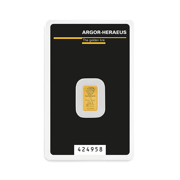 Der praktische, erschwingliche und hochliquide 1-Gramm-Barren von Argor-Heraeus ist eine zuverlässige Wahl, um in Gold, den weltweit begehrtesten sicheren Hafen, zu investieren.