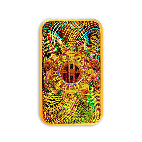 Die Rückseite ist mit einem Hochsicherheits-Hologramm verziert, das je nach Blickwinkel dynamische Farbreflexe erzeugt. Dieses einzigartige Motiv schützt den Barren vor Fälschungen und verleiht ihm gleichzeitig eine bemerkenswerte ästhetische Identität.
