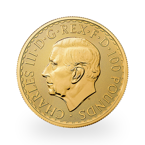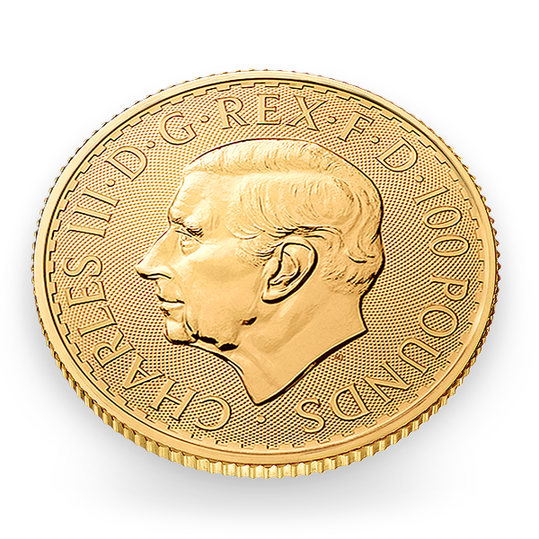 Die Vorderseite der Münze zeigt ein feierliches Porträt Seiner Majestät König Charles III., das nach links blickt und mit viel Liebe zum Detail gestaltet wurde. Die Inschriften umfassen „100 POUNDS”, „CHARLES III” und „D.G. REX. F.D.” („Dei Gratia Rex Fidei Defensor”) – Lateinisch für „König von Gottes Gnaden, Verteidiger des Glaubens” bedeutet.