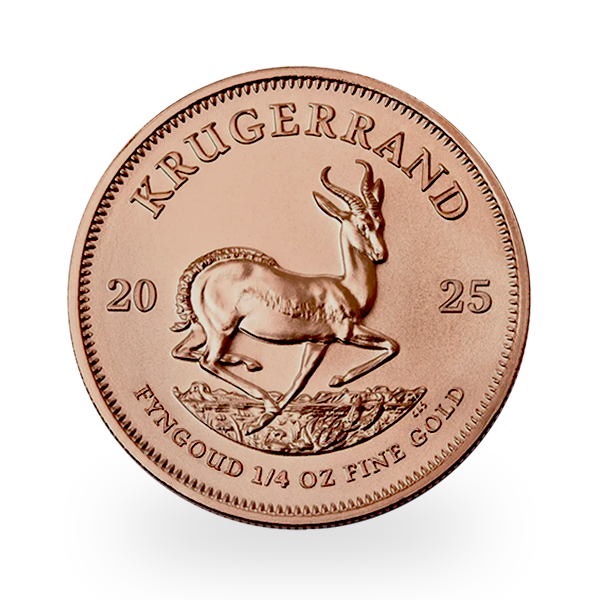 Im Gegensatz zu vielen anderen Anlagemünzen hat der Krügerrand zu 1/4 Unze keinen Nennwert, was unterstreicht, dass sein Wert ausschließlich auf seinem Goldgehalt basiert.