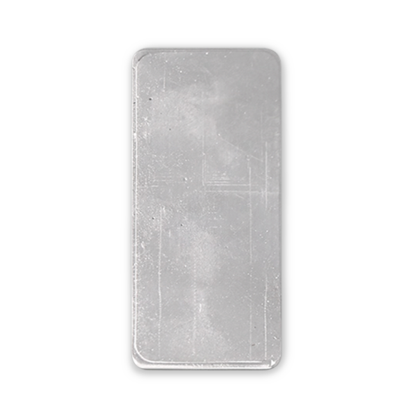 Die Rückseite wird bewusst unbeschriftet gelassen und hebt dadurch die natürlichen Maserungen und Texturen hervor, die beim Auskühlen des Silbers in der Gussform entstehen und jeden Barren zu einem Unikat machen.